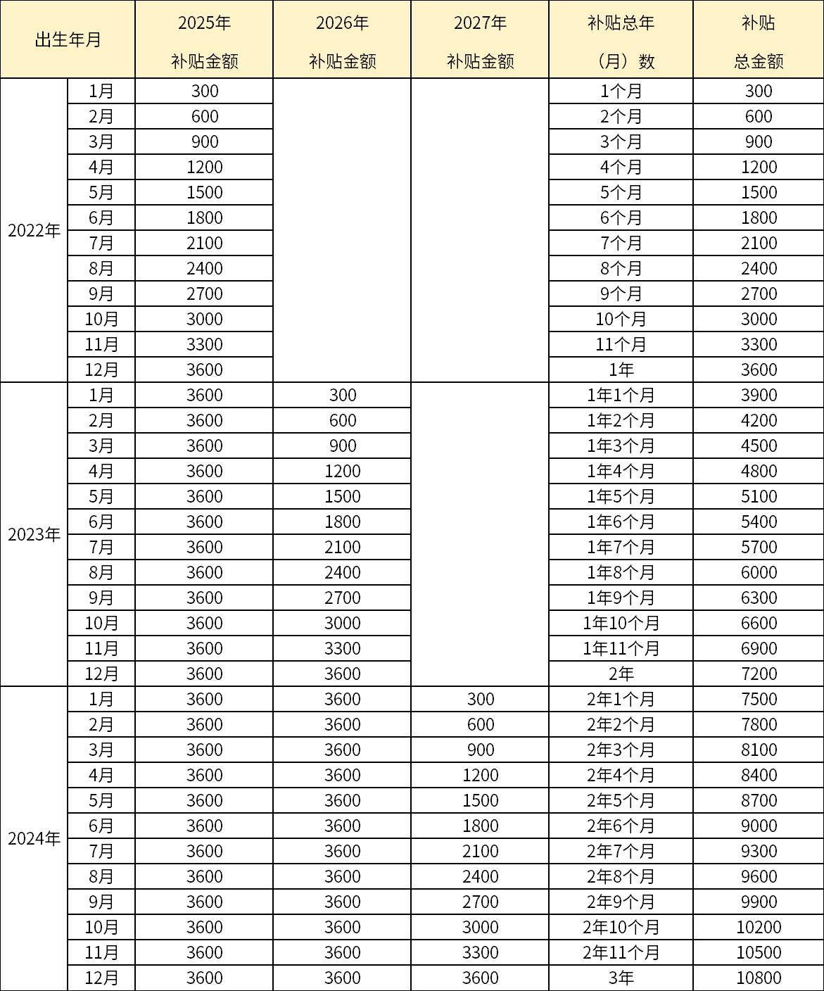 (1)對于2025年1月1日及以后出生的嬰幼兒,可連續(xù)申領3年補貼,共計10800元。